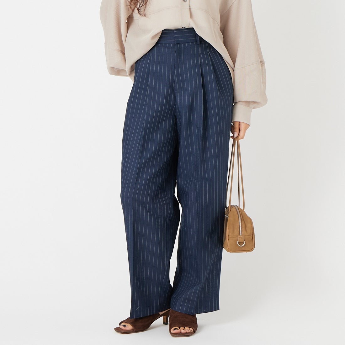 パンツ:落ち感のある素材で、ワイドシルエットながらすっきり見え。締め付け感がなく、リラックスして穿けます。
